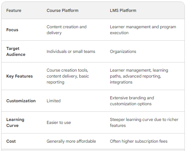 Key Differences Between Course Platforms and LMS Platforms