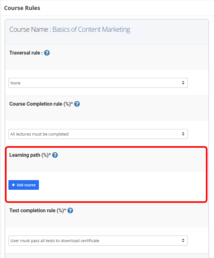 Learning path greatly helps to set a sequential order of course delivery. It allows the students to complete the training material in the sequential order. Students must complete one course in order to unlock the next one in the course.