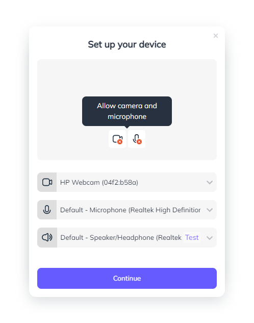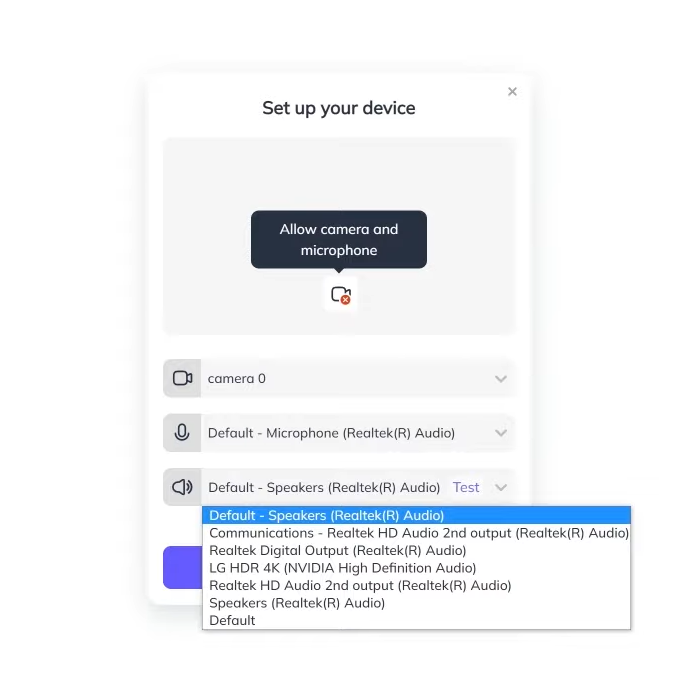 - Video settings popup will now automatically open if webcam or microphone device cannot be detected by the browser advising you with some tips to fix the issue.