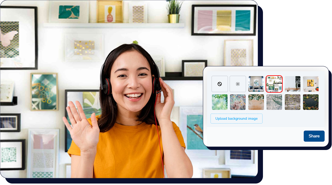 No need for perfect lighting or office aesthetics — BrainCert lets you create virtual backgrounds, blur real ones, or brand your backdrop to match your identity. Ideal for trainers, educators, and creators who want polished professionalism.